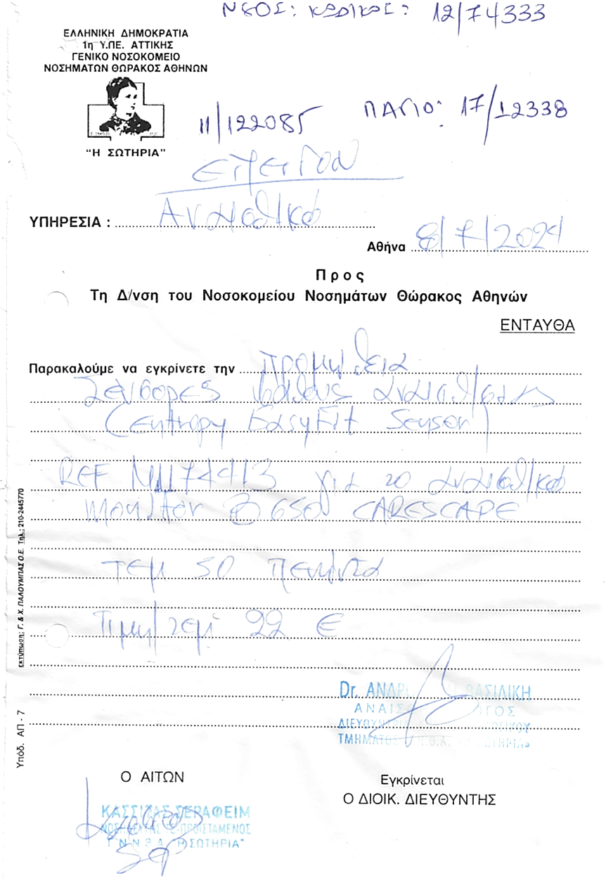Αφορά το Αναισθησιολογικό.Κύριος Καντζουρα.2107763175.